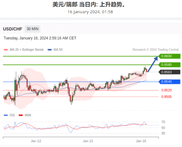 在 0.8540 之上,看涨,目标价位为 0.8580 ,然后为 0.8600 。