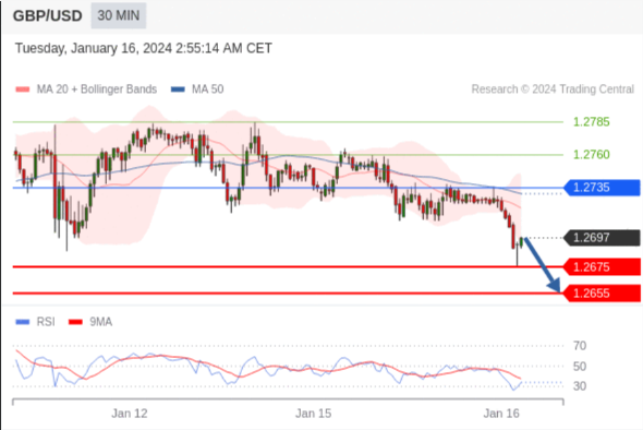 在 1.2735 之下,看跌,目标价位为 1.2675 ,然后为 1.2655 。