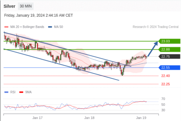 在 22.55 之上,看涨,目标价位为 22.88 ,然后为 23.03 。
