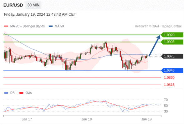 在 1.0845 之上,看涨,目标价位为 1.0905 ,然后为 1.0920 。