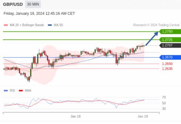 在 1.2670 之上,看涨,目标价位为 1.2725 ,然后为 1.2750 。