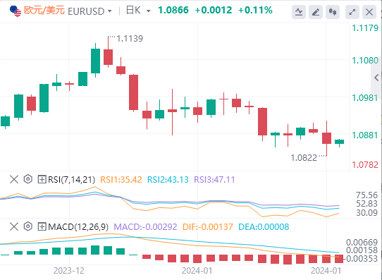 欧元/美元一度下跌至1.0821,随后有所走高。只要低于1.09,那么欧元/美元仍有可能跌至1.08。