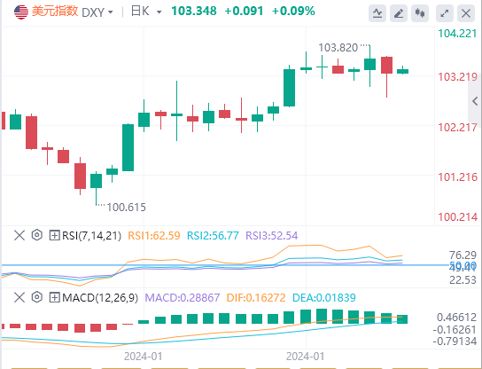昨日测试102.77,跌破我们提到的支撑位103-102.98附近。这可能表明,如果该指数在接下来的几个交易日保持在103.70-103.50以下,它可能会获得一些下行动能,最终跌至102.50或更低。关键数据将于本周发布,尤其是美国PCE和第四季度GDP,这可能会影响美联储的降息策略。
