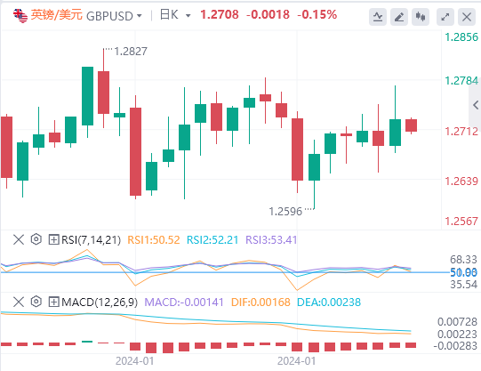 一直在1.26-1.28之间波动,并可能在接下来的几个交易日保持这种状态。我们需要看到该范围两侧的突破,以进一步明确方向。