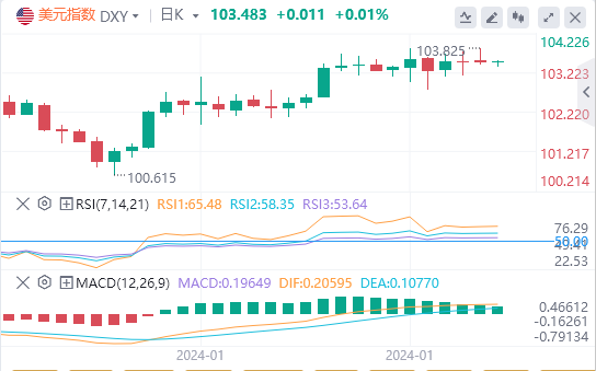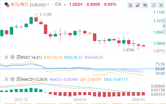 美元指数可能会继续在103-104区间内交易,而欧元/美元可能会尝试在中期内跌破1.08,并测试1.0750。