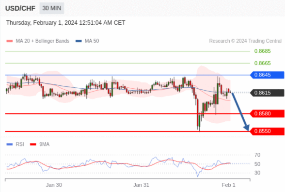 在 0.8645 之下,看跌,目标价位为 0.8580 ,然后为 0.8550 。
