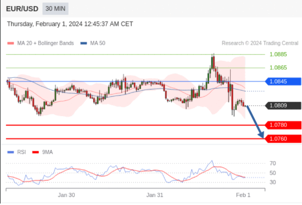 在 1.0845 之下,看跌,目标价位为 1.0780 ,然后为 1.0760 。