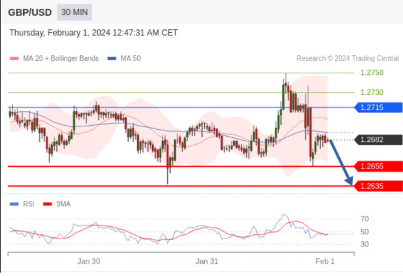 在 1.2715 之下,看跌,目标价位为 1.2655 ,然后为 1.2635 。