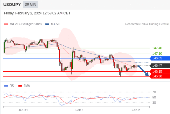 在 146.85 之下,看跌,目标价位为 146.15 ,然后为 145.90 。