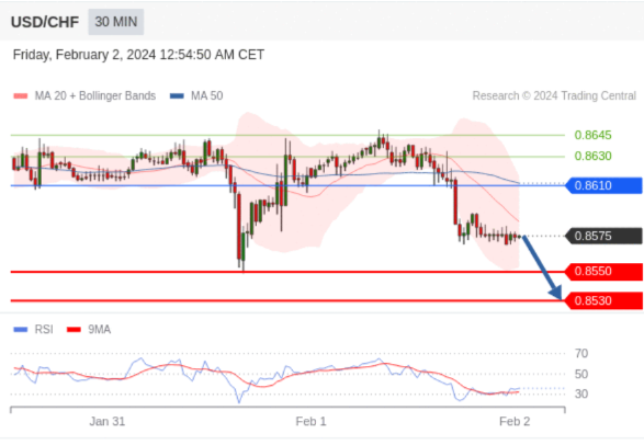 在 0.8610 之下,看跌,目标价位为 0.8550 ,然后为 0.8530 。