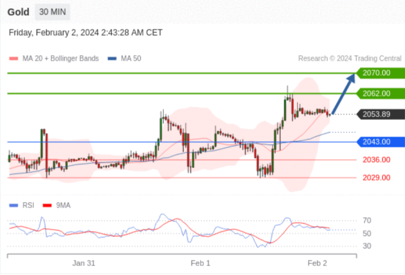 在 2043.00 之上,看涨,目标价位为 2062.00 ,然后为 2070.00 。