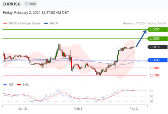 在 1.0830 之上,看涨,目标价位为 1.0900 ,然后为 1.0930 。