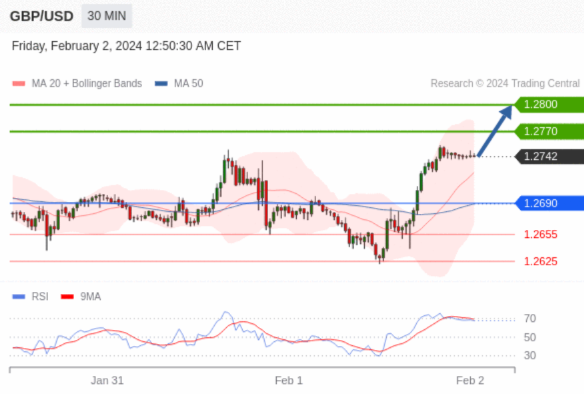 在 1.2690 之上,看涨,目标价位为 1.2770 ,然后为 1.2800 。