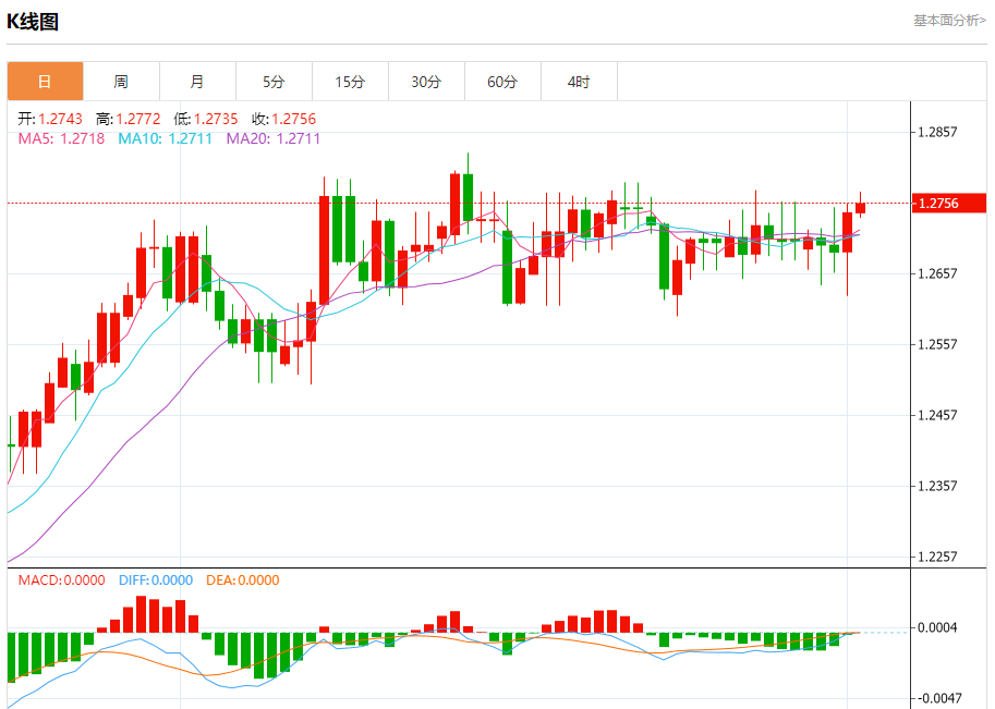 汇价高见1.2772,低见1.2735。上一交易日,汇价收于1.2743。
