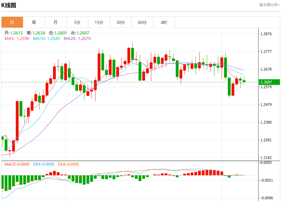 汇价高见1.2634,低见1.2601。上一交易日,汇价收于1.2616。