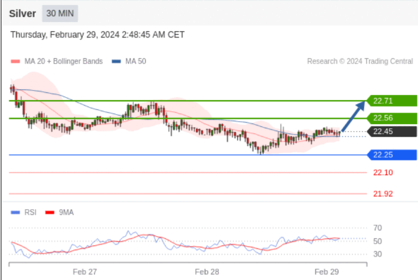 在 22.25 之上,看涨,目标价位为 22.56 ,然后为 22.71 。
