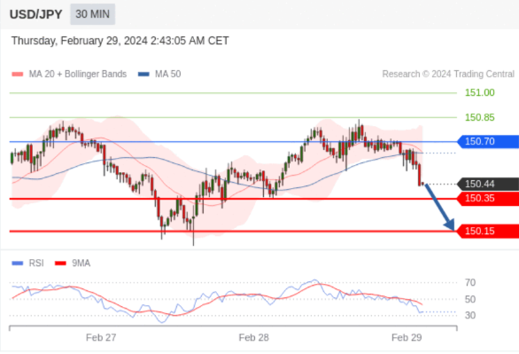 在 150.70 之下,看跌,目标价位为 150.35 ,然后为 150.15 。