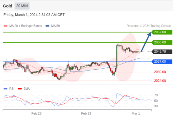 在 2037.00 之上,看涨,目标价位为 2050.00 ,然后为 2057.00 。