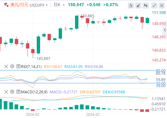 美元/日元从149.20反弹,看起来再次朝着151前进。目前的升势是否是短暂的,并可能在151-151.50面临打压,最终跌向149/148,还有待观察。需要观察未来几个交易日的价格走势。