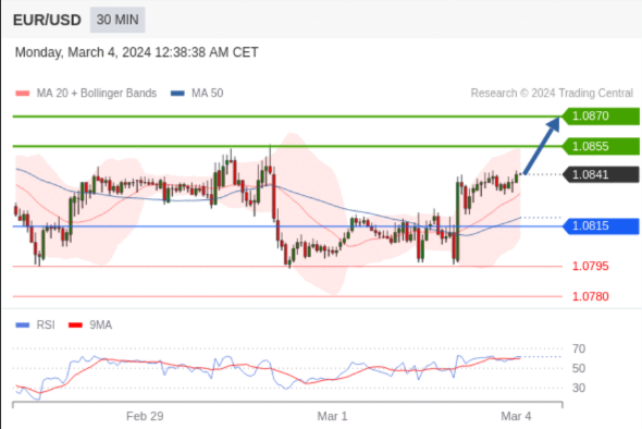 在 1.0815 之上,看涨,目标价位为 1.0855 ,然后为 1.0870 。