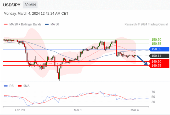 在 150.35 之下,看跌,目标价位为 149.90 ,然后为 149.75 。