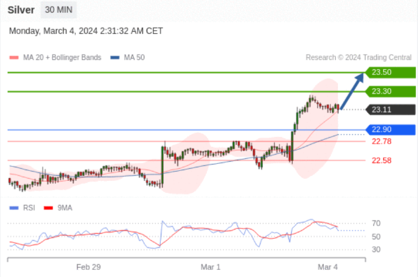 在 22.90 之上,看涨,目标价位为 23.30 ,然后为 23.50 。