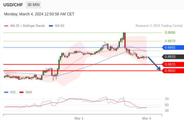 在 0.8855 之下,看跌,目标价位为 0.8815 ,然后为 0.8800 。