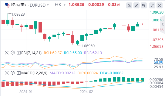 欧元/美元升至1.085上方,但无法维持,并出现小幅下跌。除非出现决定性地突破1.085,否则短期内该货币对有可能再次跌向1.075。在1.0850上方,阻力位见于1.09。