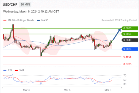 在 0.8825 之上,看涨,目标价位为 0.8865 ,然后为 0.8880 。