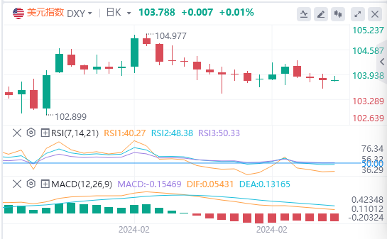 美元指数一度触及103.58(接近103.50-104.50区间的下端),目前已经有所上升。总体而言,近期区间103.50-104.50可能会继续保持。
