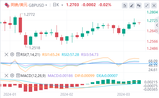 欧元/美元在阻力位1.085下方徘徊,需要突破该阻力位,才能进一步升向1.09;否则,短期内该货币对有可能再次跌向1.075。需要观察在1.0850附近的价格走势。