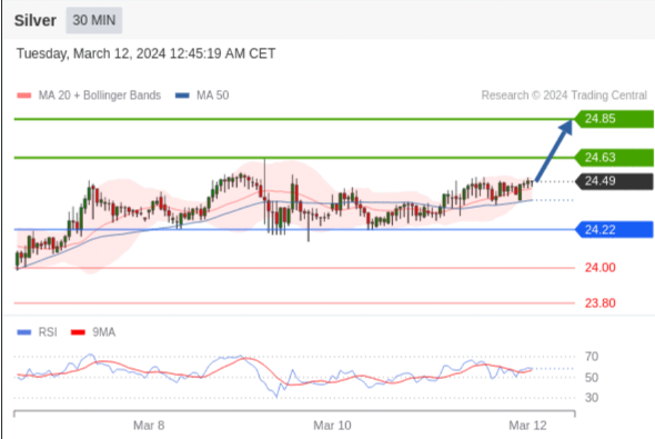 在24.22之上,看涨,目标价位为24.63,然后为24.85。