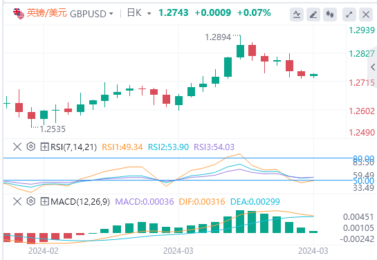 今天的预期交易区间在1.2650支撑位和1.2790阻力位之间。