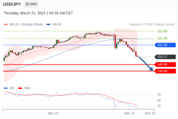 在 151.00 之下,看跌,目标价位为 149.80 ,然后为 149.40 。