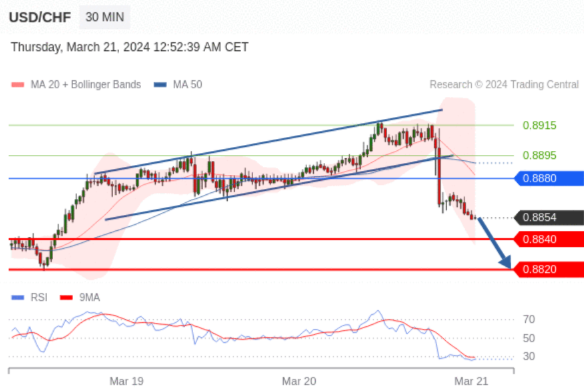 在 0.8880 之下,看跌,目标价位为 0.8840 ,然后为 0.8820 。