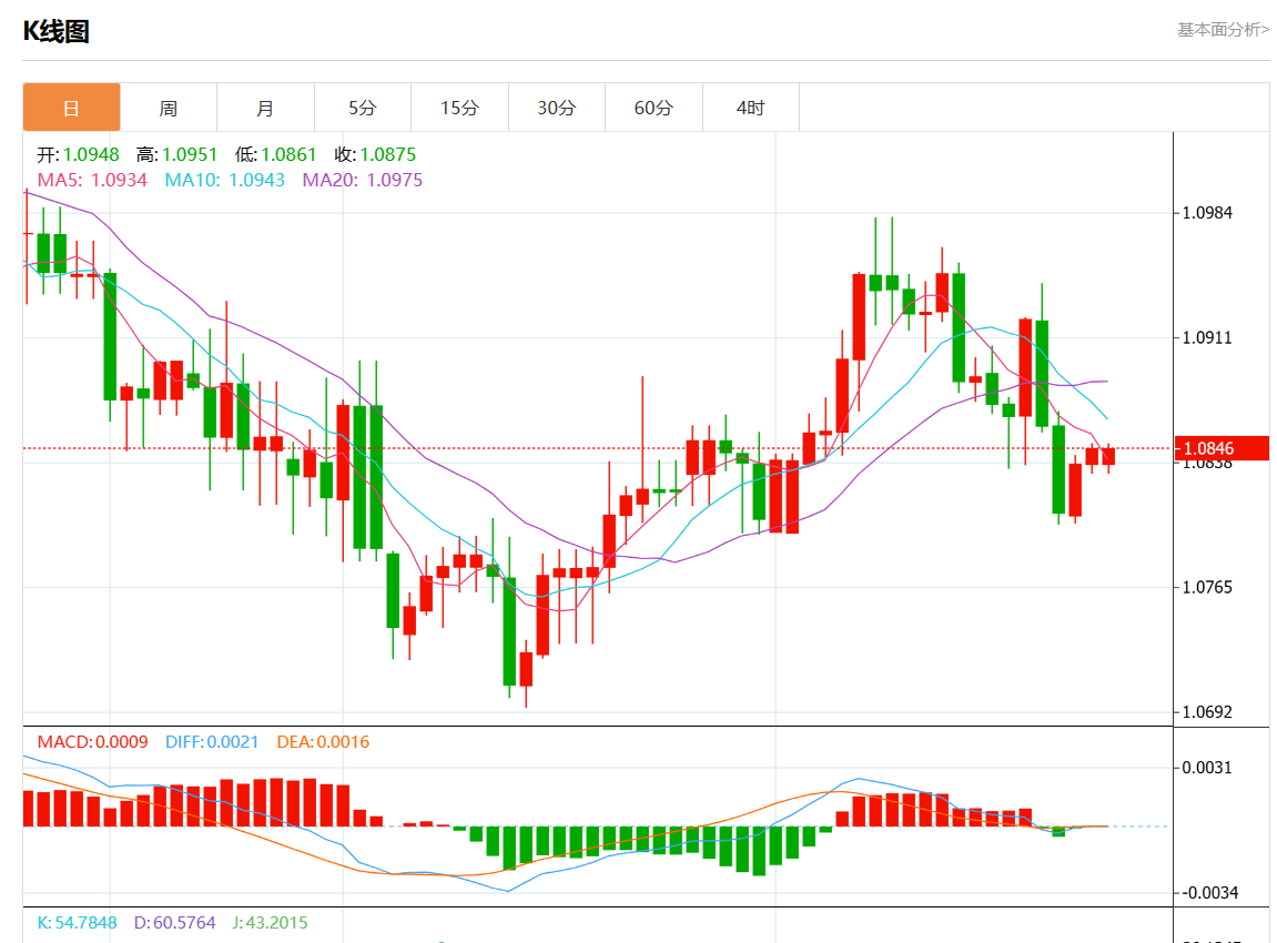 周二欧市盘中,欧元/美元最新报1.0845,日图涨0.11%.