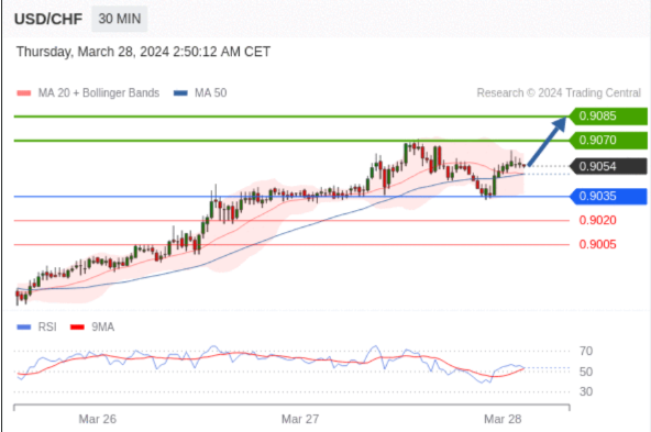 在0.9035之上,看涨,目标价位为0.9070,然后为0.9085。