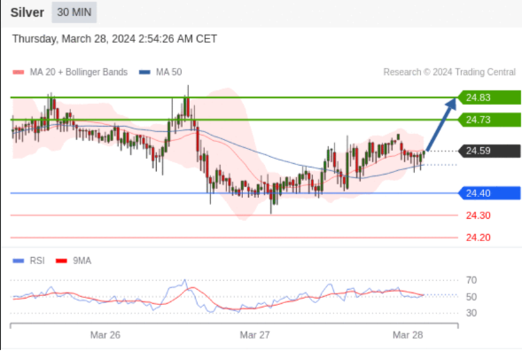 在24.40之上,看涨,目标价位为24.73,然后为24.83。