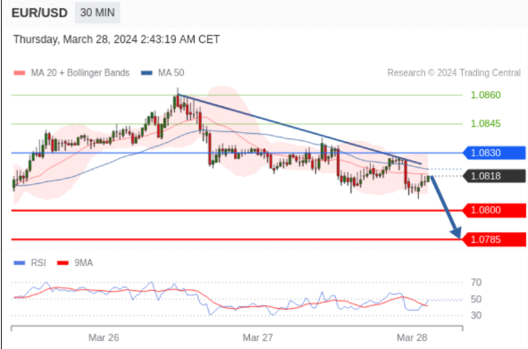 在1.0830之下,看跌,目标价位为1.0800,然后为1.0785。
