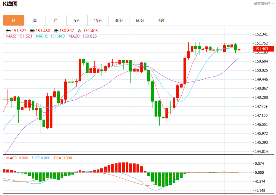 汇价高见151.450,低见150.807。上一交易日,汇价收于151.331。