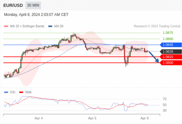 在 1.0845 之下,看跌,目标价位为 1.0815 ,然后为 1.0800 。