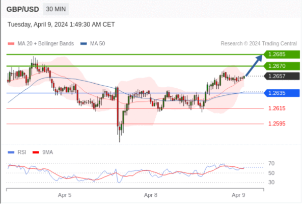 在 1.2635 之上,看涨,目标价位为 1.2670 ,然后为 1.2685 。