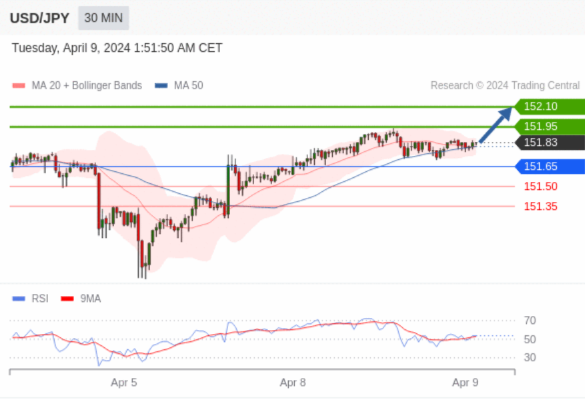 在 151.65 之上,看涨,目标价位为 151.95 ,然后为 152.10 。