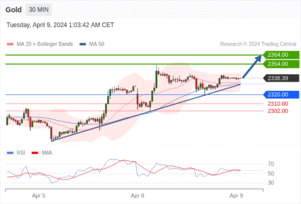 在 2320.00 之上,看涨,目标价位为 2354.00 ,然后为 2364.00 。