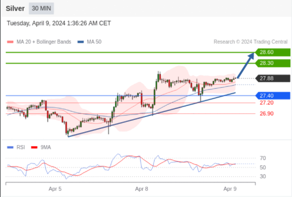 在 27.40 之上,看涨,目标价位为 28.30 ,然后为 28.60 。