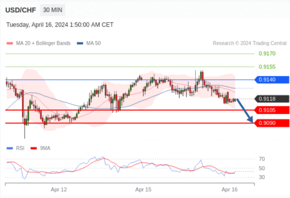 在0.9140之下,看跌,目标价位为0.9105,然后为0.9090。