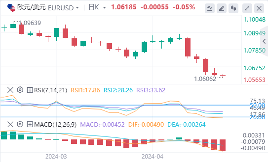 欧元/美元正接近我们预期的水平1.06,但该货币对究竟是会反弹向1.07,还是会继续跌向1.055-1.05,还有待观察。
