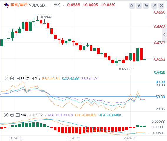 澳元/美元一度大幅下跌至0.6558的低点,之后略有回升。总体而言,短期内可以维持在0.67-0.65的区间。
