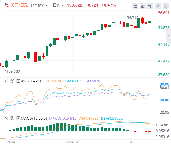 美元/日元周一亚市盘中位于153.60附近,日内大涨逾0.6%。日本央行暗示对12月加息持谨慎态度,这令日元承压。