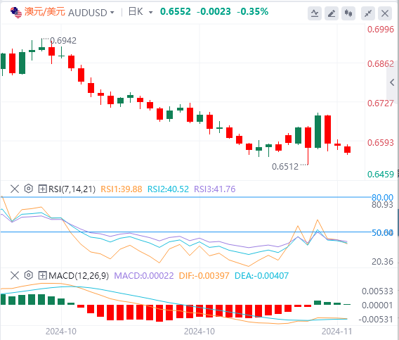 澳元/美元继续在0.67-0.65的宽幅区间内走低,该区间短期内可以维持。